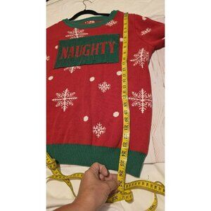To be Jolly Ugly Christmas Sweater Womens Size XL Naughty Nice Swipe Sequins red