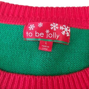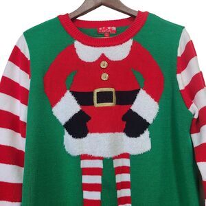 To be Jolly Womens Ugly Christmas Sweater Elf Striped Sleeves Holiday Sz Large