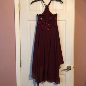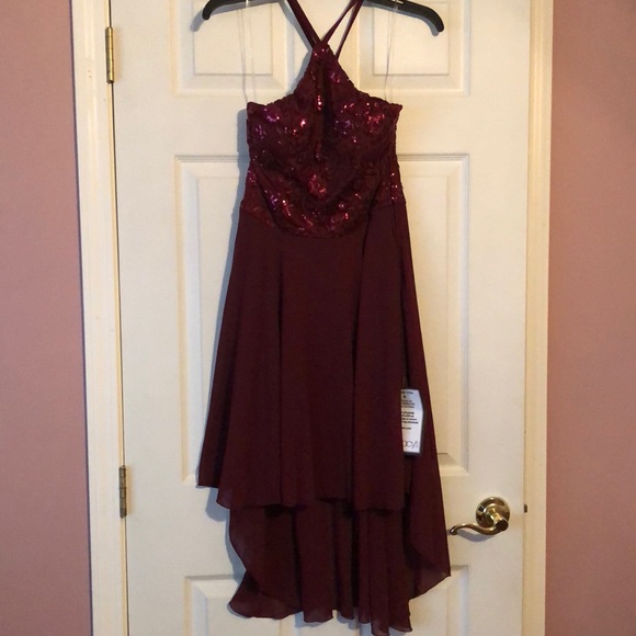 Never worn, tags still on the dress! Beautiful wine color cocktail dress. Fun for homecoming, prom or any dance or special evening outing. Designer “Speechless” size 13.