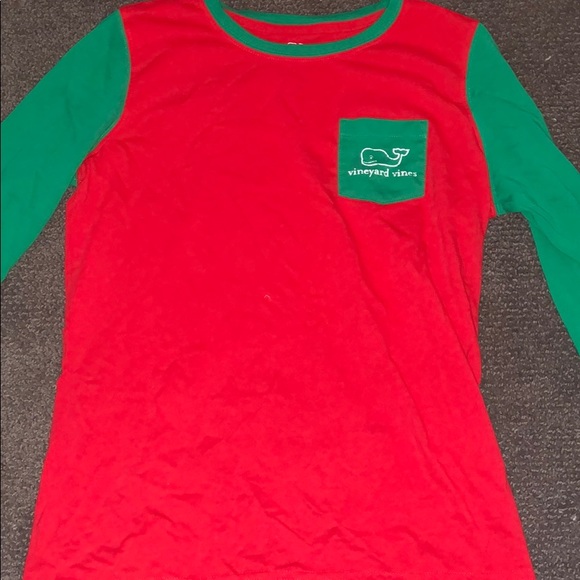 Red and green vineyard vines shirt! I got it last Christmas. In vary good condition!!