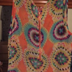 Peach floral zip back pocket on front top