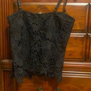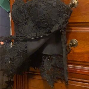Solid black corset crop top, with flower lace as a top layer.