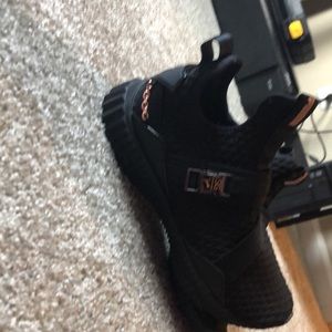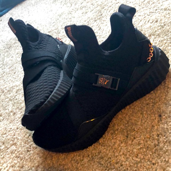 Puma all black with rose gold chains and clip slip on snug fit