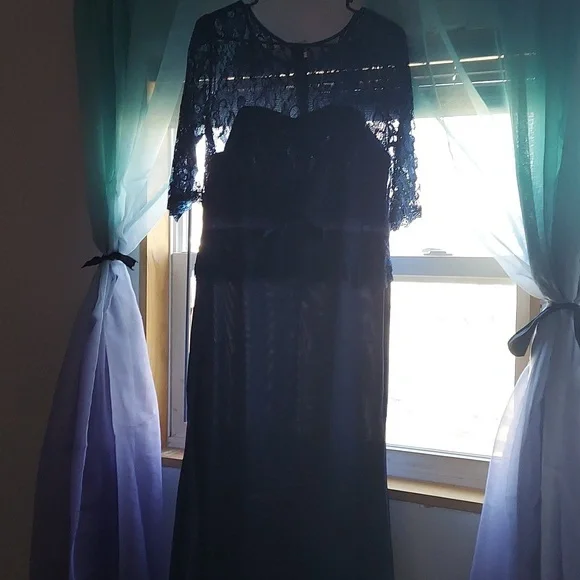 I had ordered this dress for my daughter's wedding, it is to small for me . It is half sleeve top lace and polyester (silky) . Size is XXL