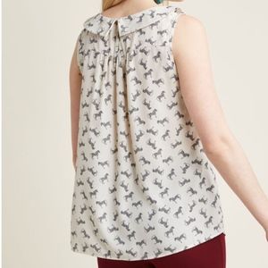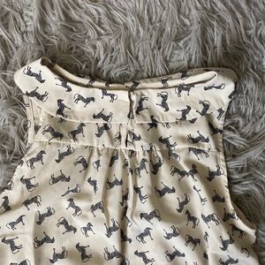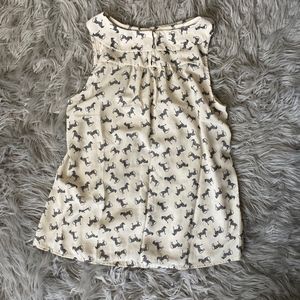 Cute zebra-print sleeveless top from Modcloth. Color is off-white with black zebras. Fit is a little loose, but TTS. Only worn a few times. Comes from a smoke-free home. Please ask if you have any other questions! No trades.