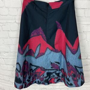 Beautiful fully lined skirt Black with red, purple, blue design Zipper closure Length 23” In excellent condition