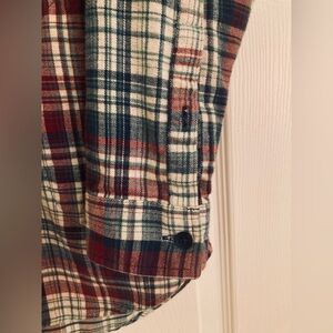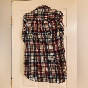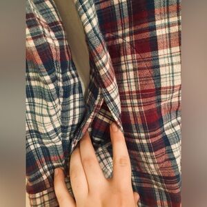 A blue and red flannel mini button-up collared shirt dress with breathable cotton material, side pockets and button wrists. In good condition - no tears or stains. Great for anyone! All offers accepted.