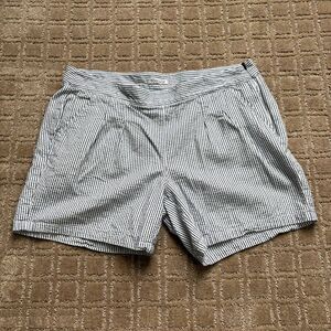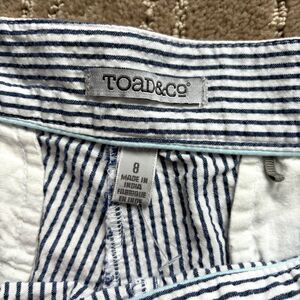 Toad & Co 100% Organic Cotton Seersucker Blue White Striped Shorts Sz 8 Preppy