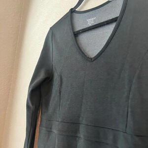 Toad & Co 3/4 Sleeve V Neck Dress Medium Heathered Black Long Sleeve Knee