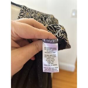 Excellent condition. Black with white and yellow daisy print. Short sleeves, v-neck, knee length.