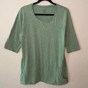 Toad & Co Women's size Medium Blue Gray Stripe 3/4 Sleeve Pullover Top. Toad & Co brand women's top in a size medium. Blue and gray colorway in a striped design. Crewneck neckline. 3/4 length sleeves. Pocket at the hips. Measurements as pictured. In great pre-owned condition, see photos for more details. Always feel free to ask any questions you may have! Reasonable offers accepted.