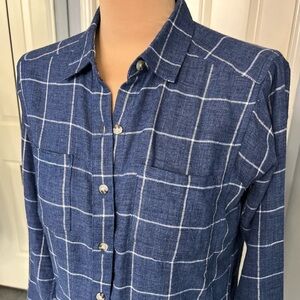 Toad & Co Blue Plaid Flannel Cairn Button Up Shirt Cabincore