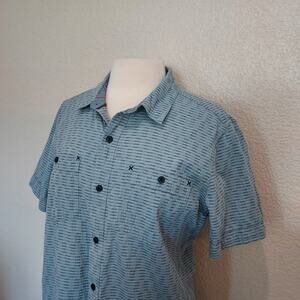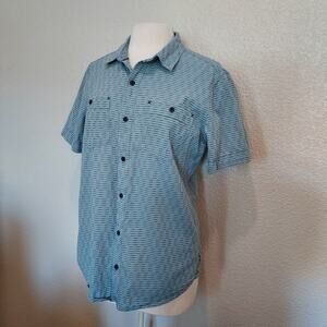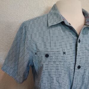 Toad & Co Blue Striped Button Down Short Sleeve Size M