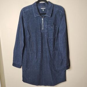 Toad & Co Corduroy Shirt Dress L Houndstooth Popover Pockets Fall Layering