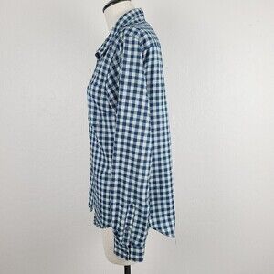 Toad & Co Dakotah Travel Shirt M Blue Green Plaid Button-Front Wool Blend