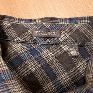 Toad & Co Grey Blue Plaid Organic Cotton Long Sleeve Smythy LS Shirt Size 2XL