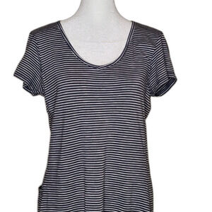 Toad & Co Marley Dress Gray White Striped Short Sleeve V-Neck Women's Size Small