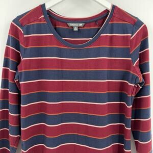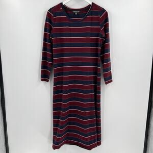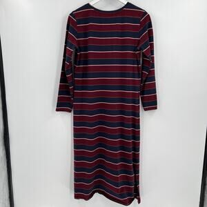 Toad & Co Montclair Midi Length Dress Organic Cotton Blend Striped Red Blue Stripes Casual Long Sleeves Pullover Stretch