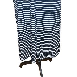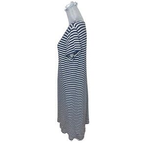 Toad & Co Muse Dress Size L Organic Cotton Midi Navy Blue Striped Pocket