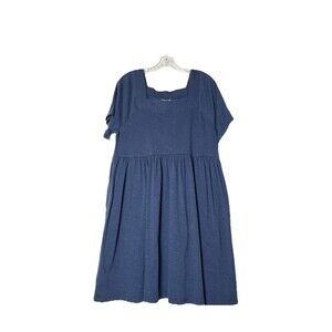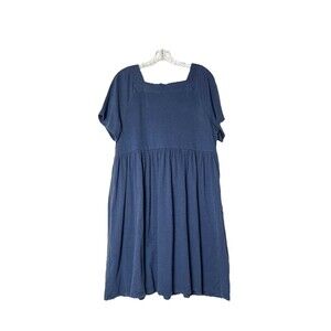 Toad & Co Navy Sora Babydoll Dress Size Large Square Neck Short Sleeve Pockets