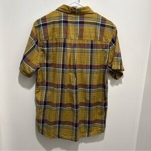 Toad & Co. Plaid Button Down Cotton Shirt Yellow Brown Plaid Casual