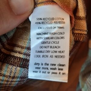 Toad & Co Recycled Cotton Plaid Pullover Button Tunic Top With Pockets Size S. Fold down collar with 1/2 button front closure, long sleeves, front chest pocket, 2 hidden hip pockets, signature logo patch, all-over plaid pattern, loose fit, tunic length, and a round hi-lo hemline. In excellent condition! Lightweight material 55% recycled cotton 45% recycled polyester. Size small.