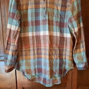 Toad & Co Recycled Cotton Plaid Pullover Button Tunic Top With Pockets Size S