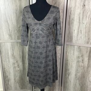 Toad & Co Rosalinda gray/tan 3/4 sleeve midi dress women's S