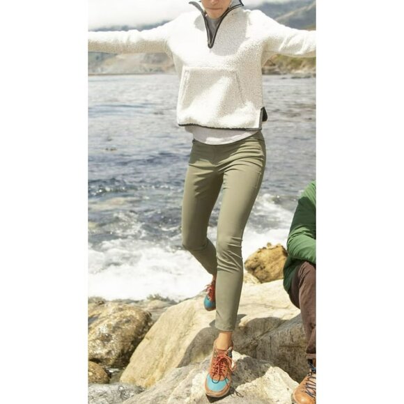 These Toad & Co Rover Moto Crop Beetle Green Legging Pants Sz 6 NWT provide a comfortable fit and trendy style. Perfect for casual wear or outdoor adventures.