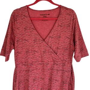 Toad & Co Short Sleeve Cue Wrap Café Dress Organic Cotton Orange Guava Wave Sz L