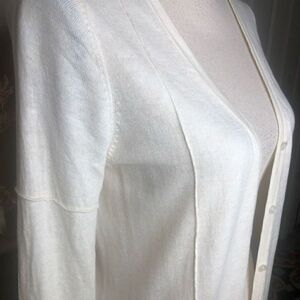 Soft soft and light as a feather, this go with anything cardigan is a must have wardrobe builder. And so cozy. In like new condition.
