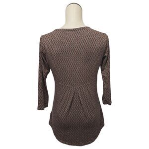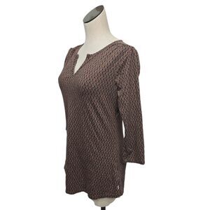 Toad & Co Tamaya Dos Tunic Size Small Brown Geometric Split V-neck 3/4 Sleeve