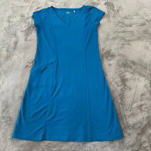 Toad & Co Tech Tomboy Cap Sleeve Dress SMALL Blue Tennis Pickleball Stretch