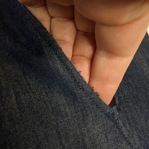 Toad & Co Wayfarer sleeveless blue faux denim v neck top M. Some fraying at the neckline (see photo)