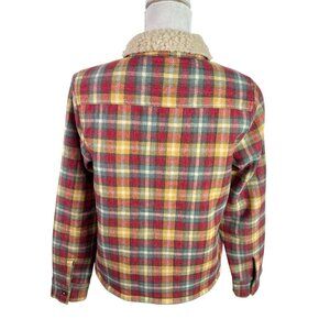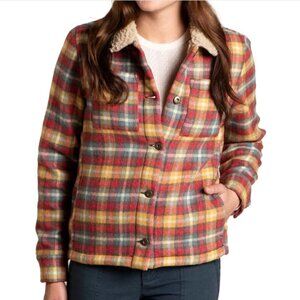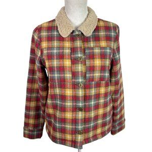 Toad & Co Women's S Button Sherpa Plaid Jacket Recy. Wool Bld Red EUC