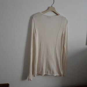Toad & Co off-white cardigan sweater s wool tencel cotton blend. a small repair was done on one sleeve of the cardigan. see photo
