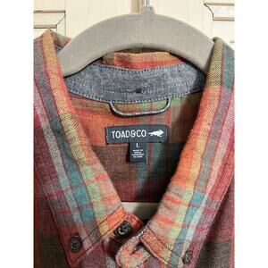 Toad & Co size large mens plaid recycled cotton button down shirt in excellent condition. No signs of wear. Fall colors. Measures 23” from armpit to armpit and 29” long.