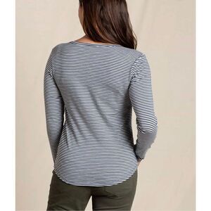 Toad&Co women’s Marley II long sleeve v neck tee in navy stripe NWT