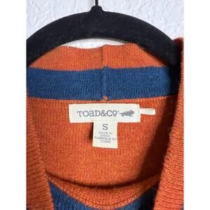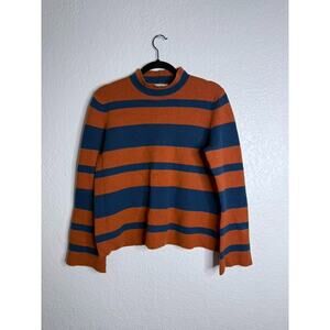 Toad and Co. Blue Orange Striped Sweater Small Mock Neck Lambswool Non Mulesed
