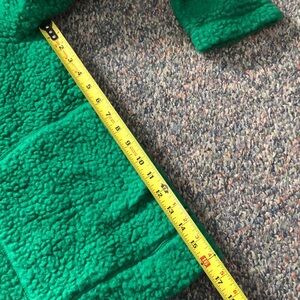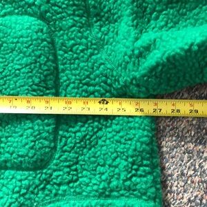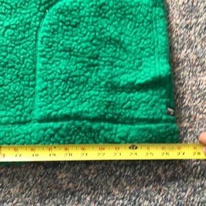 Amazing and so warm and cozy. The hang tag on the inside is ripped (pictured). Other than that, great condition. The one thing to know is this fabric pills so it will get on whatever you wear underneath it or layered on top of it and whatever you put in the wash with it. I think it is just the wool fabric that naturally pills. Great for outdoors lovers.