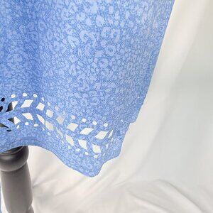Great sleeveless dress for travel, the beach or anywhere you want to stay cool. Quick dry when wet. Laser cut details at the hem. Scoop neck in front and back.