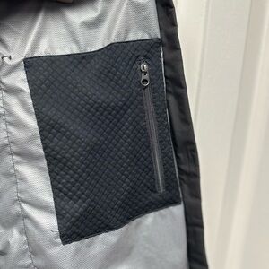 This sleek black trench coat from Toad&Co offers a semi-fitted silhouette with a mid-thigh length, perfect for urban wear. Crafted from a weather-resistant fabric, it features an integrated hood and a minimalist design, making it ideal for inclement weather.