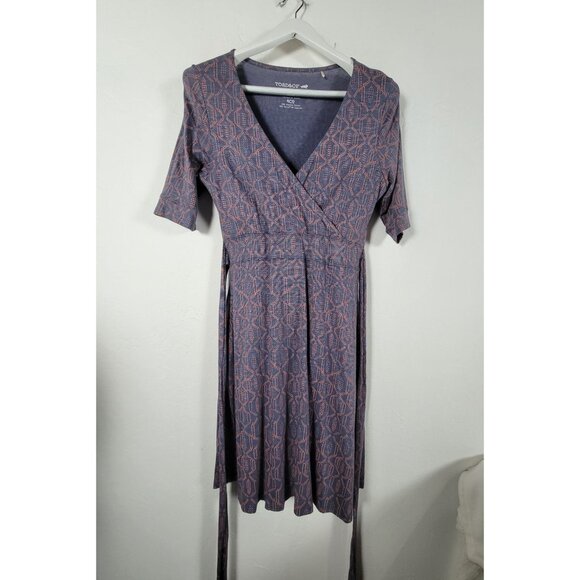 Toad&Co Cue Wrap Cafe Dress Small Elbow Sleeve Organic Cotton Stretch Tie-Waist