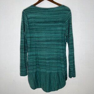 Toad&Co Green Striped Long-Sleeve Tunic Shirt Women’s L, Casual Round-Neck Top