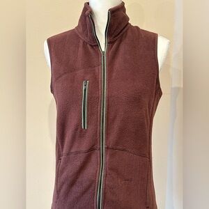 Toad&Co fleece vest, Horny Toad brown fleece zip vest, women’s outdoor vest small, hiking layer vest, brown zip front fleece, cozy travel vest, lightweight warm vest, performance fleece outerwear, casual camping outfit, soft brown fleece jacket, Toad and Co women’s vest