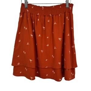 Toad&Co Manzana Tiered Skirt Rust Ditsy Print Size M 100% Organic Cotton