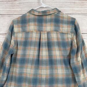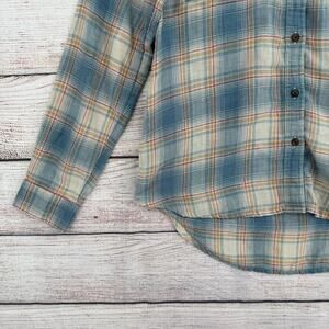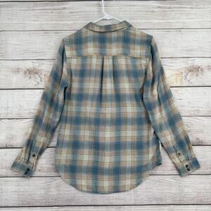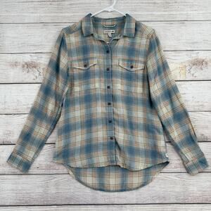 Item: Toad&Co Recycled Cotton Blend Plaid Button Down Shirt Womens Small Blue Tan Red