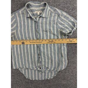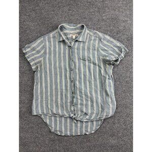 Toad&Co Shirt Womens Small Blue Striped Short Sleeve Button Down Organic Cotton