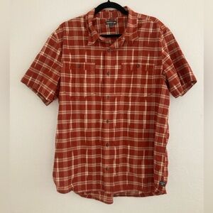 Toad&Co Smythy Short Sleeve Shirt Red Plaid Button Front Outdoors Comfy Chores