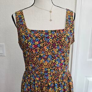 Toad&Co Sunkissed Floral Midi Dress Sz M Square Neck Boho Sustainable Casual